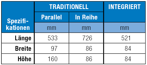 (25–75 mm) als auch ein traditioneller Antrieb mit Reihen-Montage