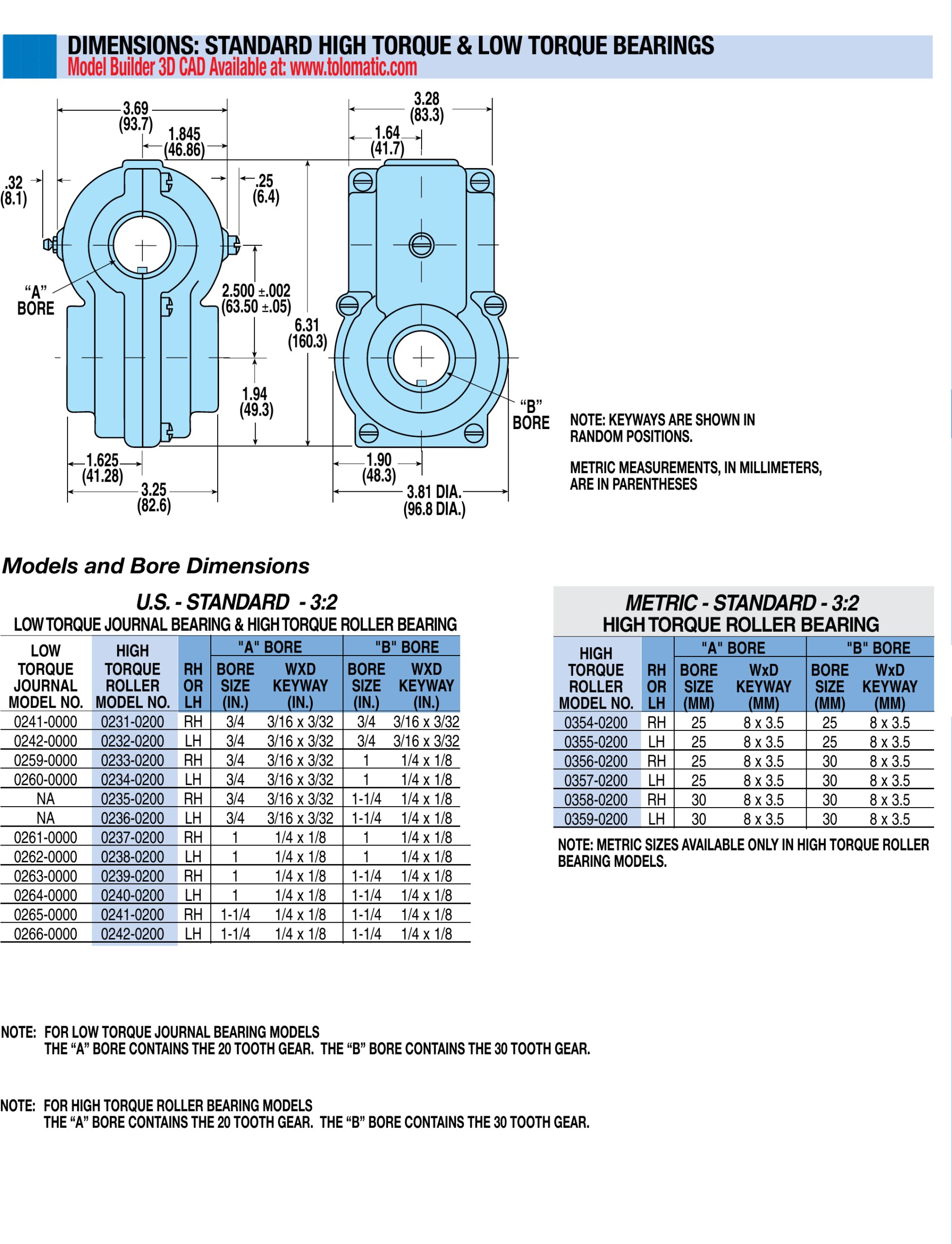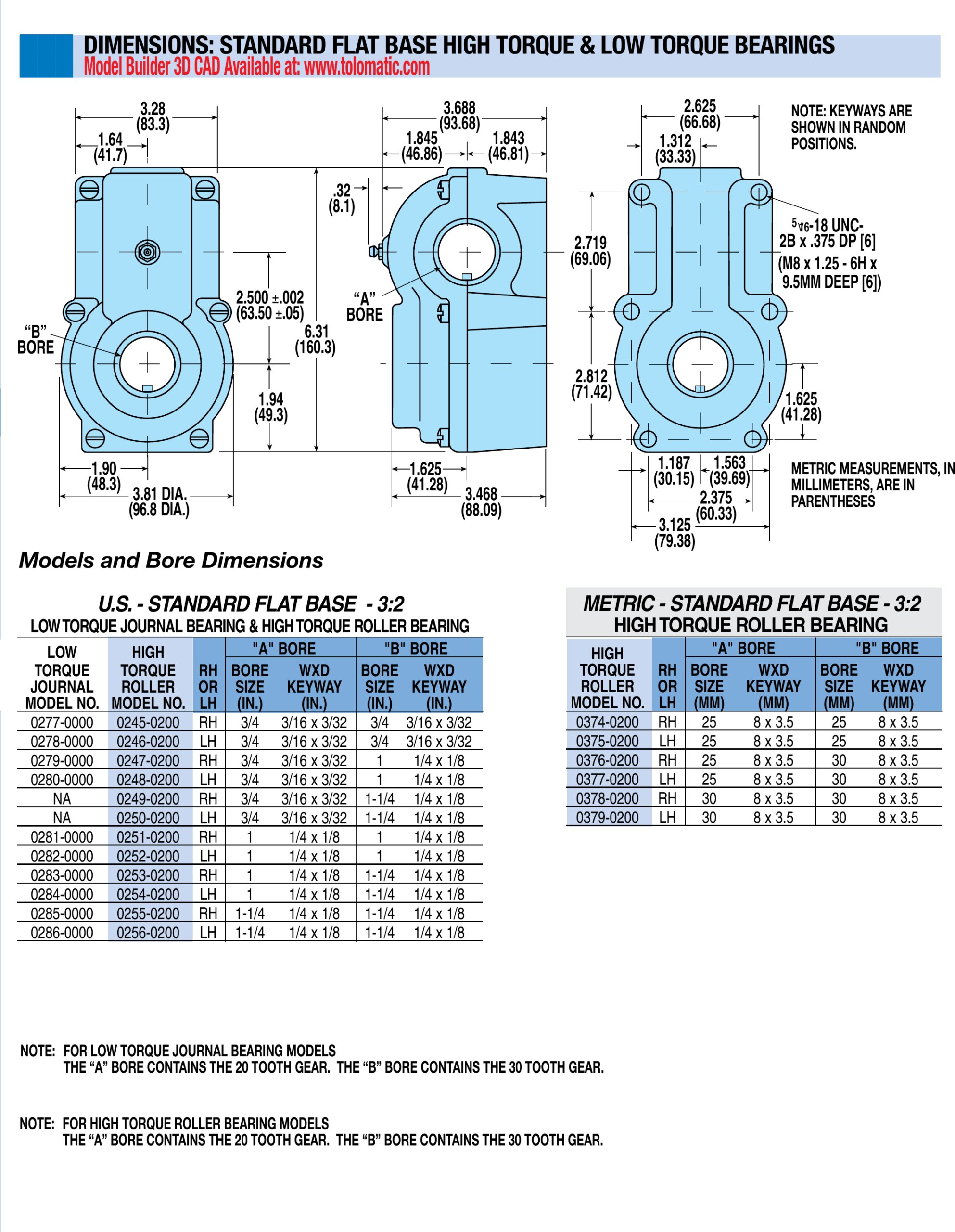 Das rechtwinklige Float-A-Shaft® Getriebe mit 3:2 Übersetzung und geringem Drehmoment bietet je nach Eingangsdrehzahl ein maximales Drehmoment von 90,4 Nm ( 800 in-lb). Die Modelle sind mit Standardhalterung und Flachboden erhältlich.