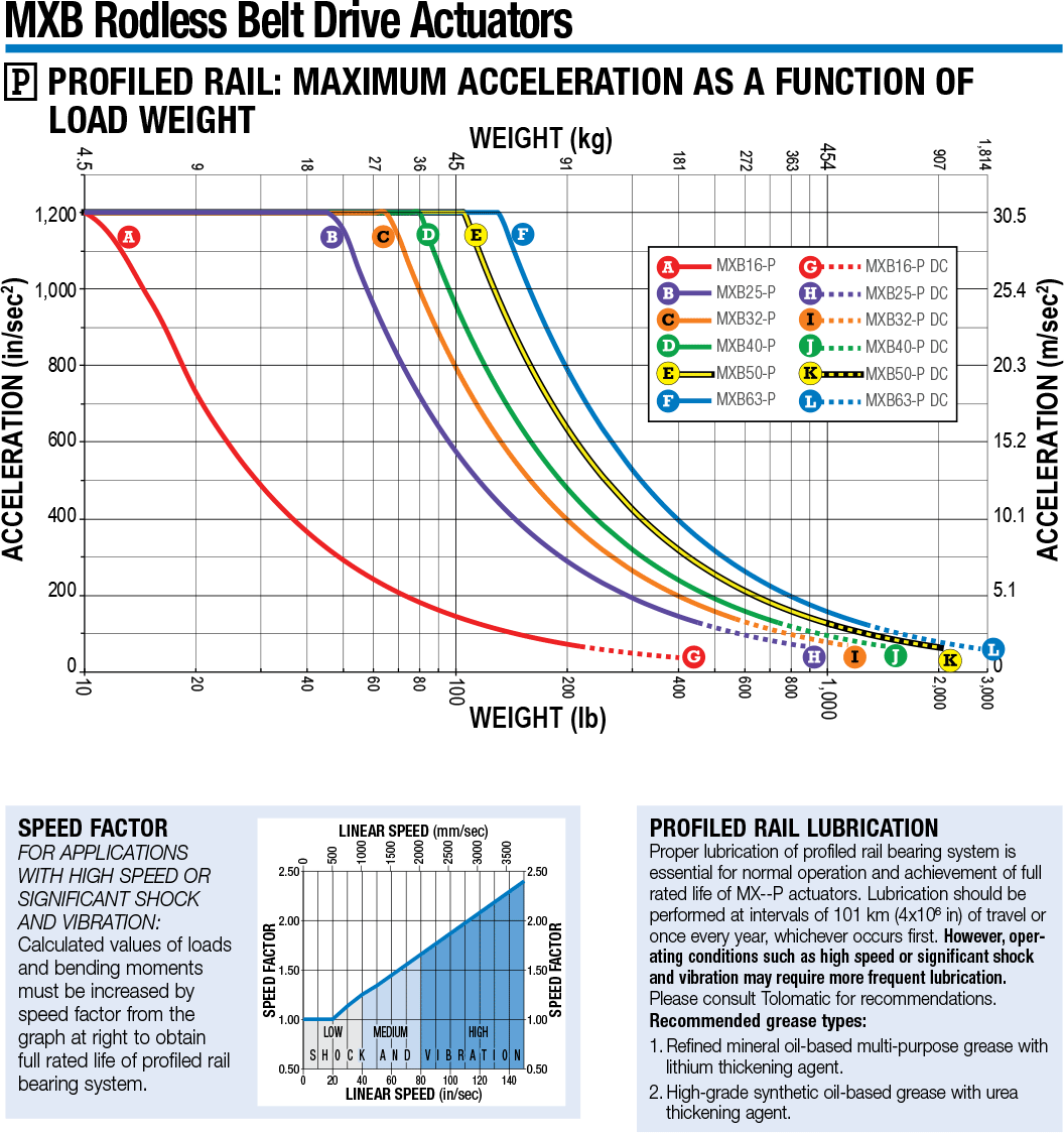 MXB-P Maximale Beschleunigung in Abhängigkeit vom Lastgewicht