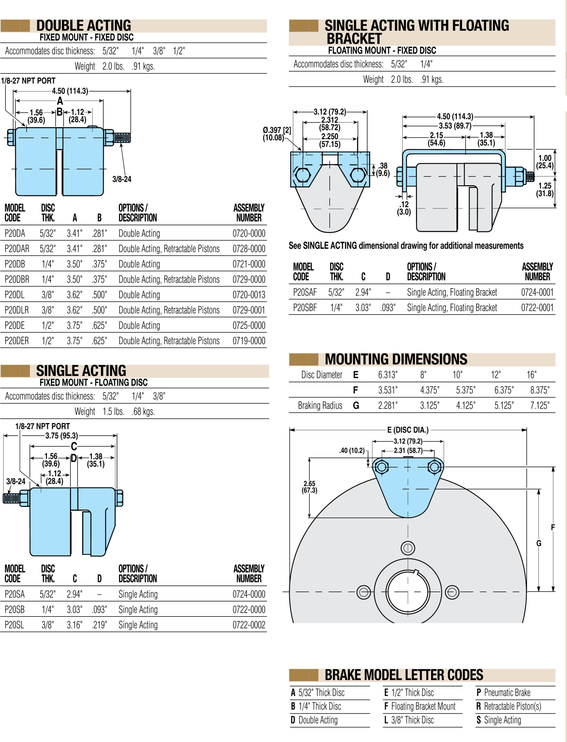 Die pneumatischen Bremsen der Serie P20 bieten ein Drehmoment von bis zu 113 Nm (1000 in-lb) bei einem maximalen Druck von 6,9 bar (100 PSI). Die Serie P20 von pneumatischen Bremsen umfasst einfach- und doppeltwirkende Modelle.