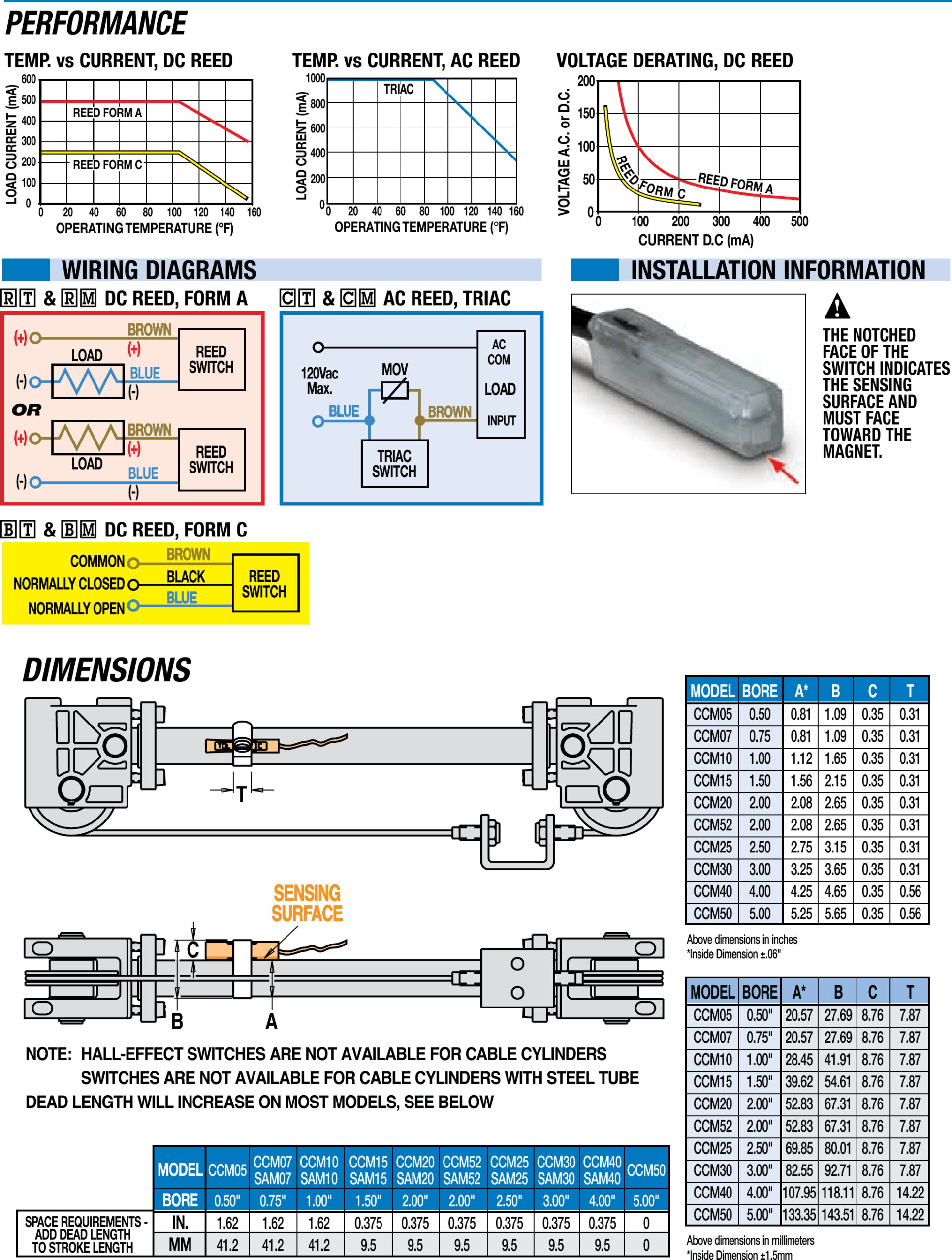 TC Schalter, Leistung, Verdrahtung und Abmessungen