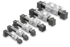 Rugged stage with twin profile rails and a machined base, providing a highly rigid and accurate actuator. Mult-axis configurations are standard and ideal for adding a 7th degree of freedom for robots. Loads up to 1,360 lbs (615 kg).