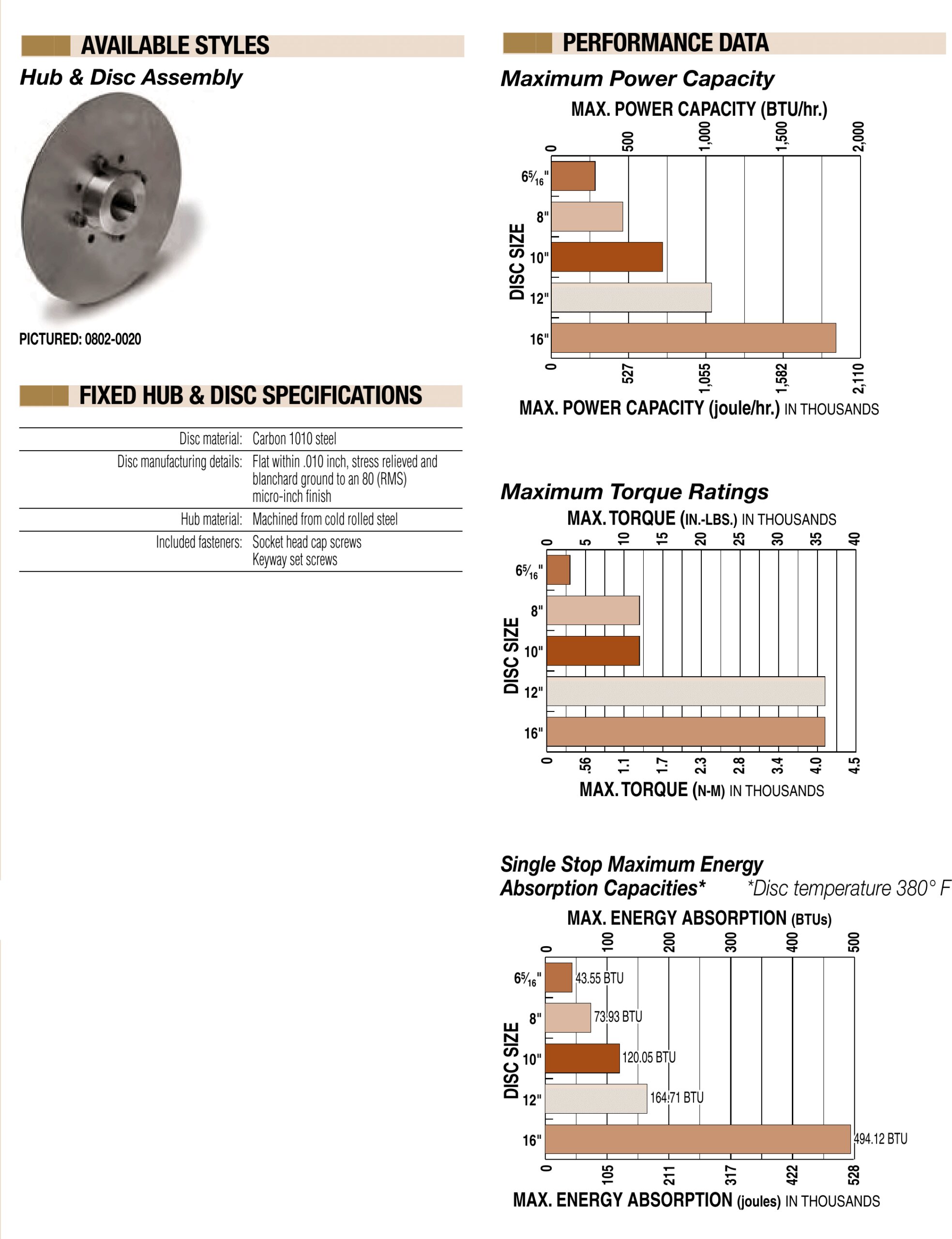 Fixed Hub & Disc Assemblies Specs & Performance Data