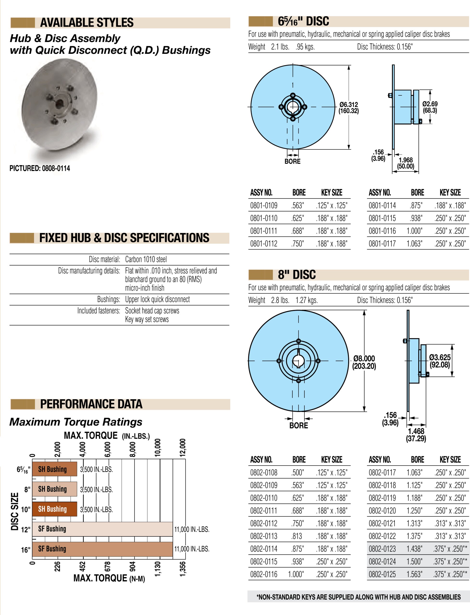 Fixed Hub & Disc Assemblies with QD Bushings: Specs and Dimensions for 6- & 8-inch Discs