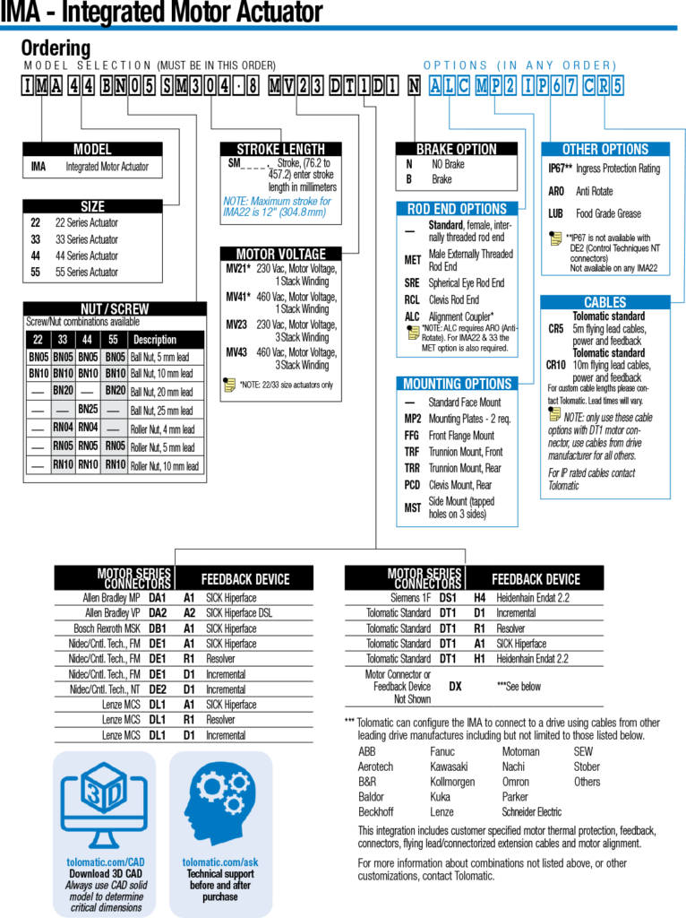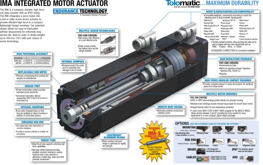 Tolomatic’s integrated motor products (IMA & IMAS) integrate with a wide range manufacturers’ servo drives. Check our Drive Integration Resource for supporting documentation and motor files.