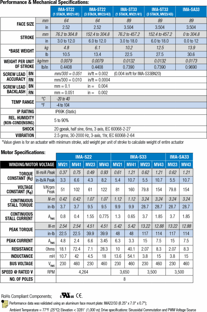 IMA-S Motor Specs & Additional Performance, Mechanical Specs