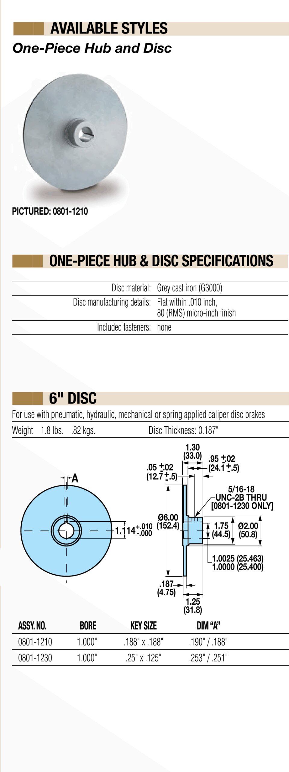 Fixed Hub & Disc Assemblies Specs & Performance Data