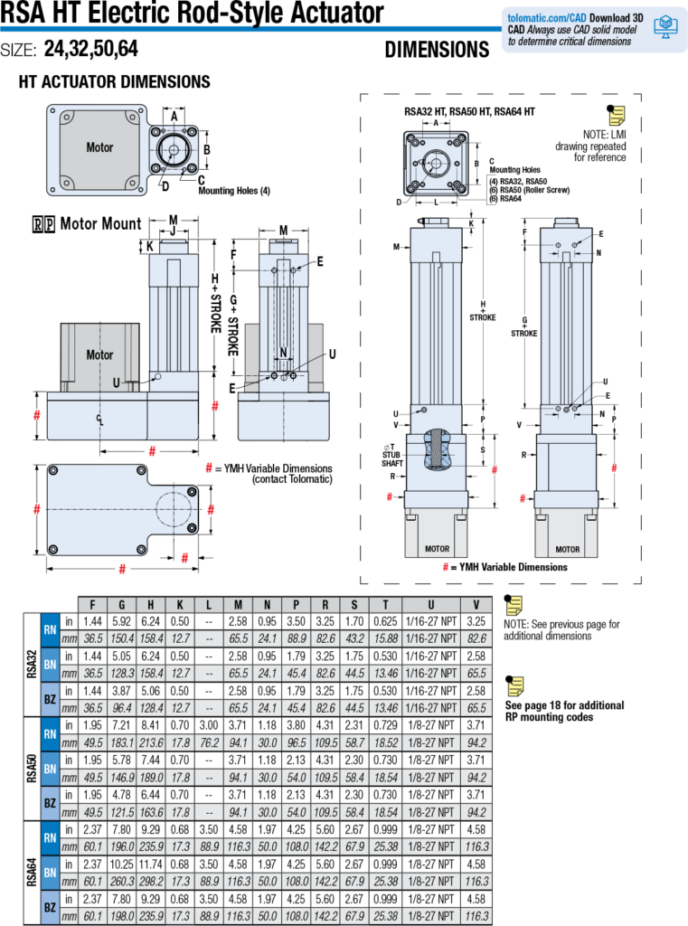 The RSA electric rod actuator offers the most complete selection of sizes, options and system components. Designed with high performance, high force, dependability and mounting flexibility in mind, RSA/RSM electric rod actuators offer a cost-competitive solution for a multitude of motion control applications.