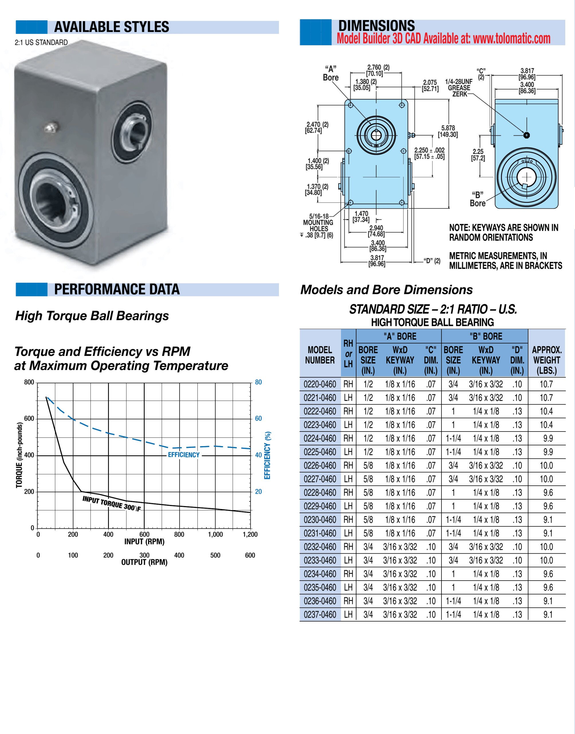 Tolomatic’s standard size 2 to 1 Slide-Rite® right angle gearbox delivers up to 541 in-lbs (61 Nm) of torque depending on input RPMs.